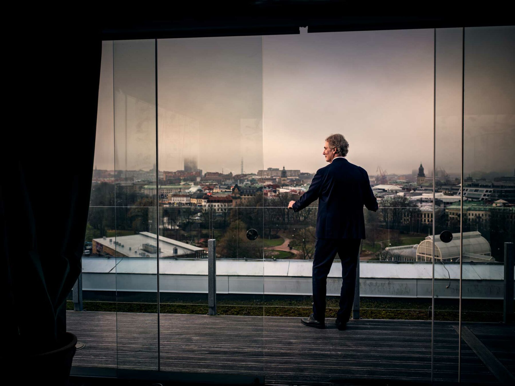 Härifrån syns många av de byggnader som Balder äger eller har låtit uppföra. Däribland det 34 våningar höga landmärket Draken och det ännu mycket resligare Karlatornet.
