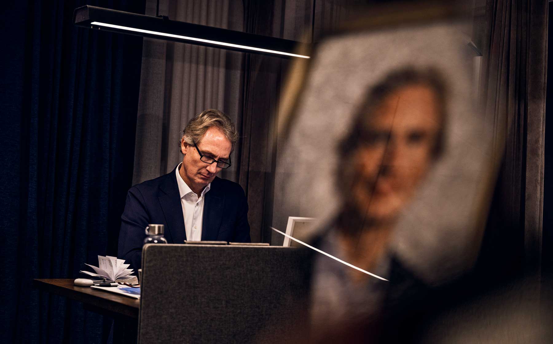 Vi befinner oss i huvudkontoret i Göteborg. Erik Selins arbetsrum har fönster i två väderstreck och milsvid utsikt över staden och Hisingen.
