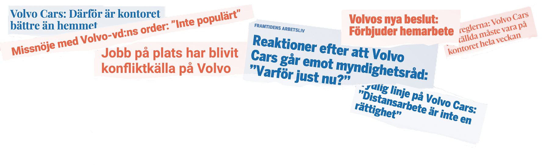 Kontorsnärvaro När Volvo Cars nygamla vd Håkan Samuelsson kom tillbaka våren 2025 infördes närvaropolicy på fem dagar i veckan på kontoret. Ett nytt digitalt kontrollsystem övervakar hur detta följs. Här berättar Magnus Holst, presschef Volvo Car Sverige, hur medarbetarna reagerat.